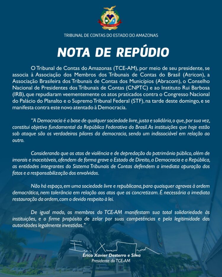Presidente do TCE-AM emite Nota de Repúdio contra atos praticados em Brasília