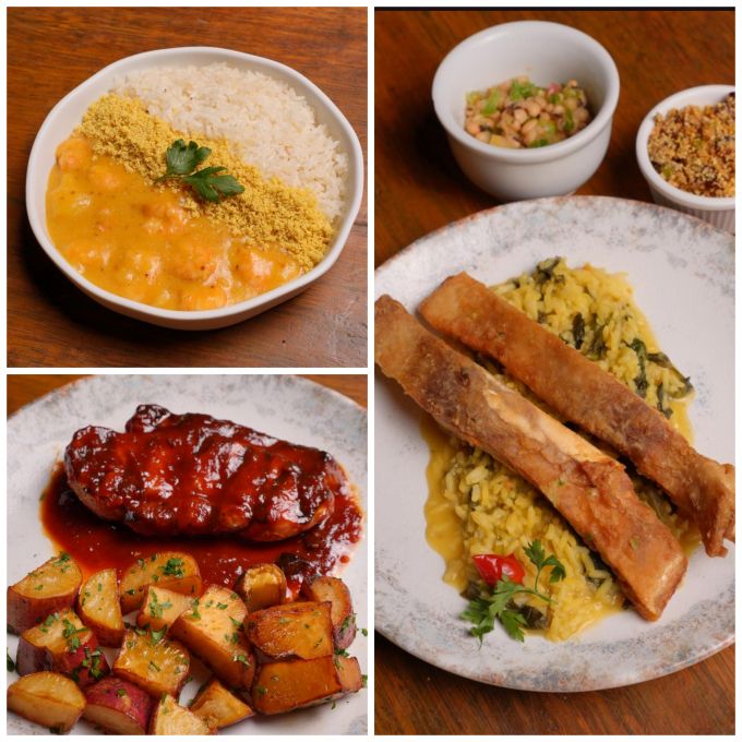 Entre as opções de entrada, o cliente pode escolher entre o bolinho de carne seca ou a salada Verano. Nos pratos principais, o cardápio reúne clássicos da casa, como a Picanha do Engenho (picanha suína assada na brasa com batata-doce rústica e molho barbecue), a Costela à Mineira e o tradicional Bobó de Camarão.