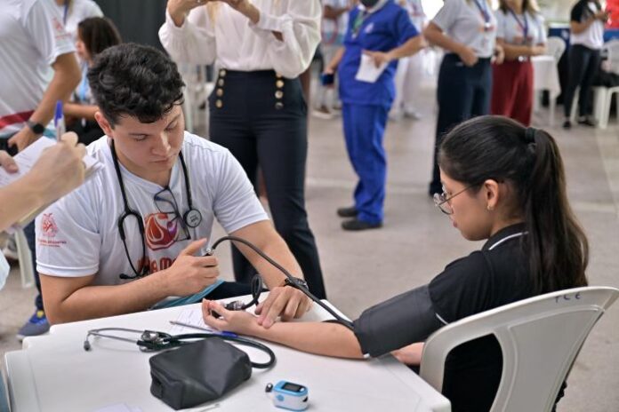 Durante o evento de lançamento, foram oferecidos serviços como aferição de pressão arterial e glicemia, avaliação de peso, orientações em saúde mental e bucal, além de atividades lúdicas, como dança, com o objetivo de engajar os participantes e estimular hábitos saudáveis.