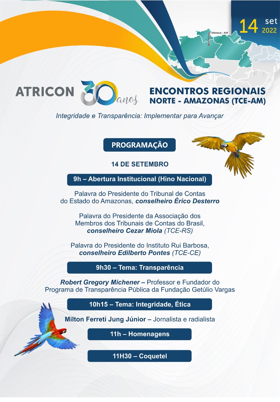 O Tribunal de Contas do Estado do Amazonas (TCE-AM), no dia 14 de setembro, será um dos palcos para a comemoração de 30 anos da Associação dos Membros dos Tribunais de Contas do Brasil (Atricon), sendo uma das sedes do Encontros Regionais Norte – Amazonas.